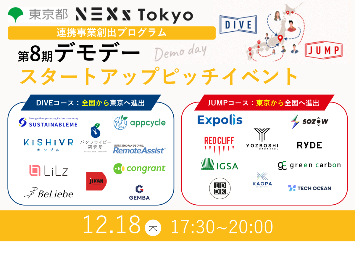 12月18日(木)「NEXs Tokyo連携事業創出プログラム第8期スタートアップデモデー」にて代表の松島がピッチ登壇いたします。